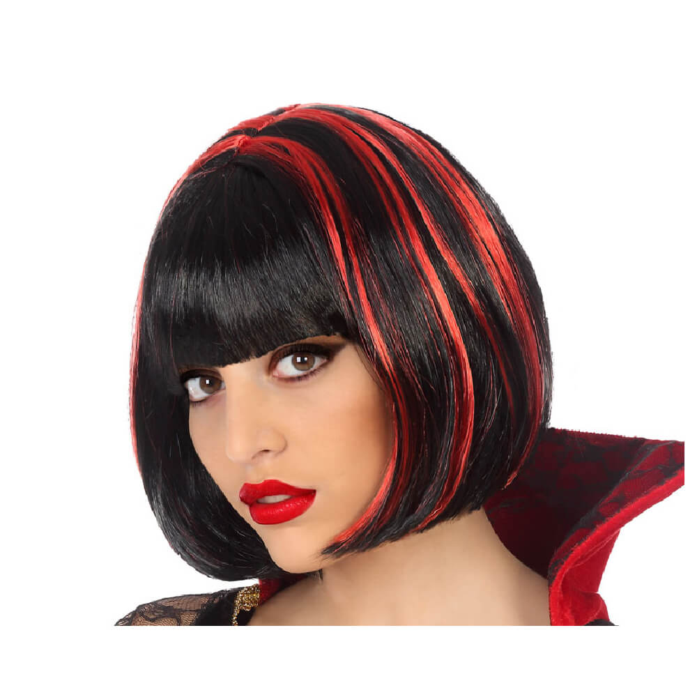 Je pustna lasulja, ki jo lahko uporabijo in odrasli in starejši otroci. Lasulja je kratka in sega do vratu. Lasulja je črne barve in ima po celotni dolžini rdeče pramene. Sprednji del lasulje je krajši in je narejena na paž. Lasuljo lahko uporabite skupaj s številnimi pustnimi kostumi, kot so hudička ali kostumi za čarovnico. Lasulja čarovnica paž je narejena iz umetnih materialov in ni primerna za pranje z vodo.