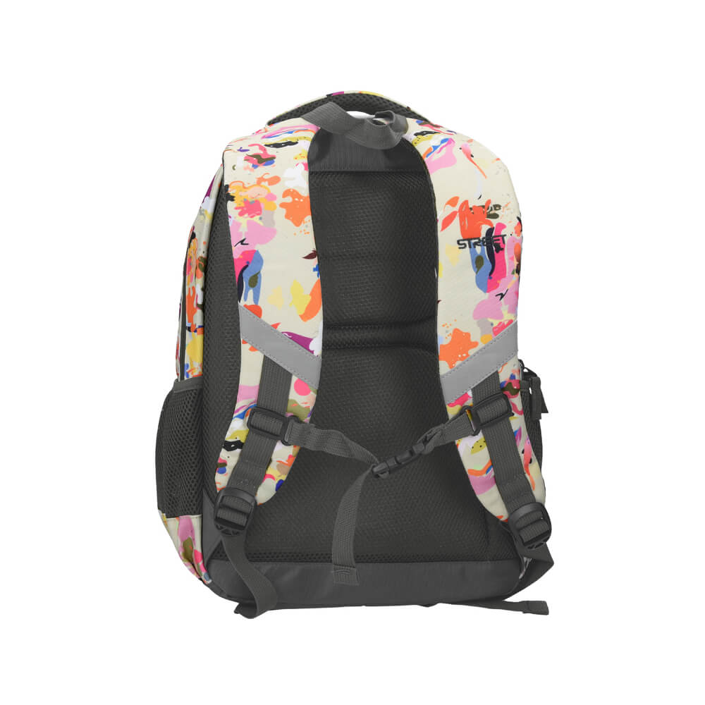 Je odličen nahrbtnik, ki ga lahko uporabite za prosti čas ali za razne aktivnosti in popoldanske dejavnosti. Uporabite pa ga seveda lahko tudi za v šolo in je primeren za šolarje od nižjih razredov osnovne šole, kot tudi za srednješolce. Narejen je iz izredno kvalitetnega blaga, prav tako pa so njegove naramnice, in hrbtišče, ojačane z mehko peno, ki zagotavlja udobnejšo nošnjo nahrbtnika. Nahrbtnik ima narejene 3 žepe, večji oziroma glavni predal ima dodan še prostor za prenosni računalnik, drugi pa je namenjen ostalim šolskim potrebščinam v izogib mešanju le-teh. Sprednji žep pa je zunanji, kamor lahko pospravite manjše osebne stvari. Poleg tega pa je opremljen še z dvema bočnima žepoma, kamor lahko pospravite bidone ali plastenke ter z odsevniki za boljšo vidljivost v temi. Na nahrbtniku se kot na platnu izmenjujejo različne barve, kar podaja nahrbtniku odličen pisan izgled ter pravi umetniški videz.